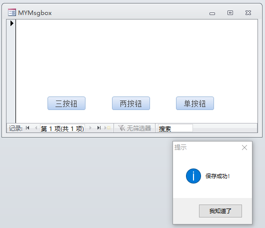 自定义MSGBOX,主要是按钮文字可以随便改改,调用也方便。下面整理成Access小示例,分享给有需要的Access学友们下载。