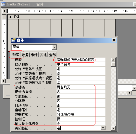 双击图7-32处左上角红框处的小黑方块,进入窗体属性(若未显示窗体属性则再次双击一次),进行该窗体以下属性设置: