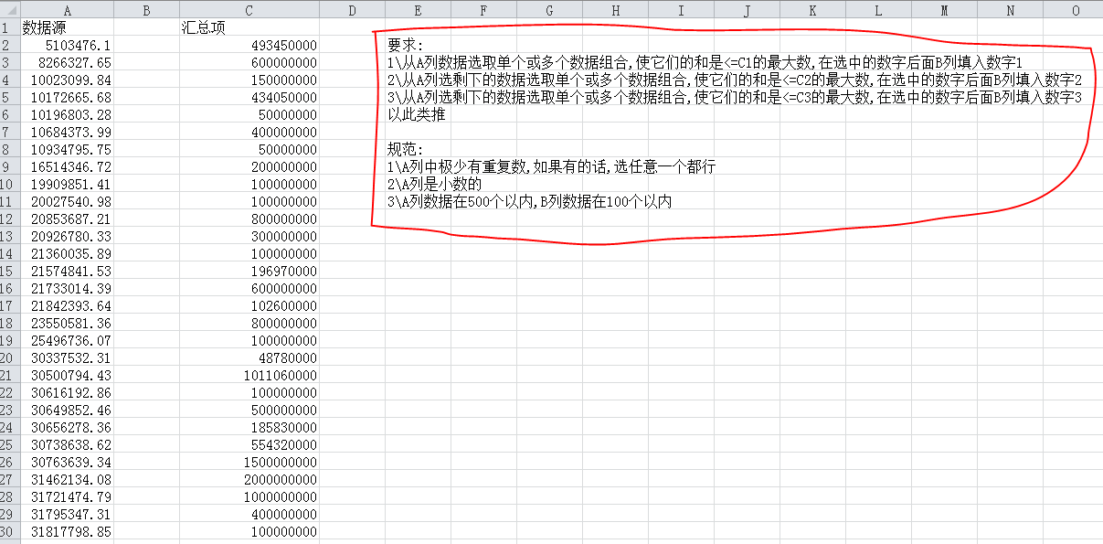 工作中遇到了关于凑数的难题。本来想用规划求解来做的,但是限制变量数量200个。