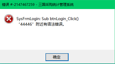 快速开发平台--登录出现错误#-2147467259- SysFrmLogin:Sub btnLogin_Click()“44446”附近有语法错误。的解决方法