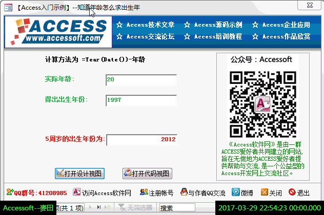 【Access菜鸟入门】知道年龄怎么求出生年份,根据年龄怎么样算出出生年份的示例