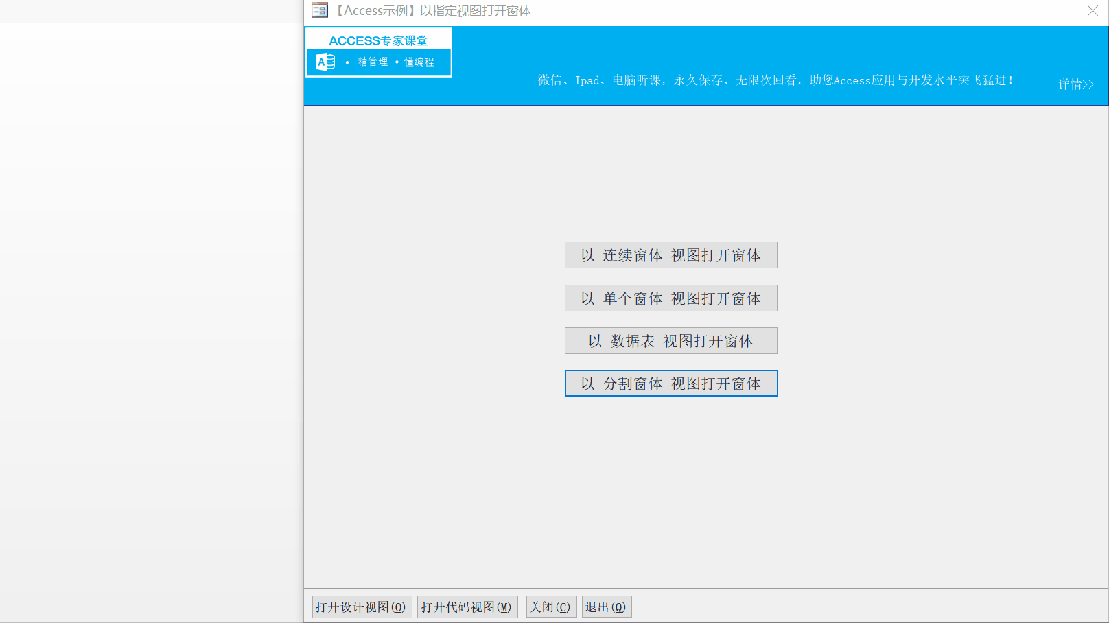 【Access示例】以指定视图打开窗体
