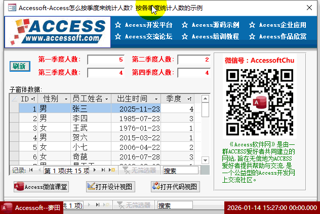 Access怎么按季度来统计人数?按各季度统计人数的示例