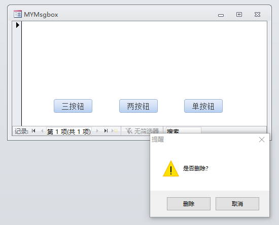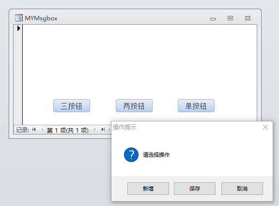 自定义MSGBOX,主要是按钮文字可以随便改改,调用也方便。下面整理成Access小示例,分享给有需要的Access学友们下载。