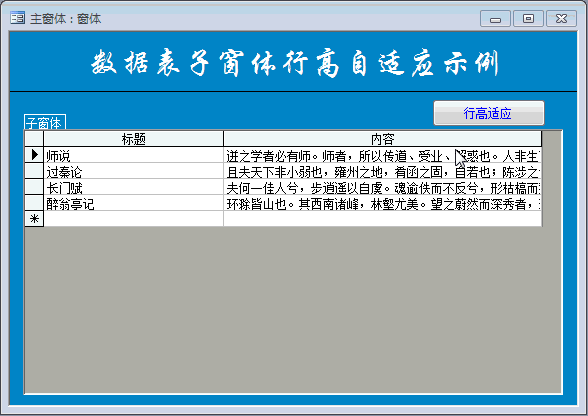 【access小品】山高路遥--子窗体行高自适应