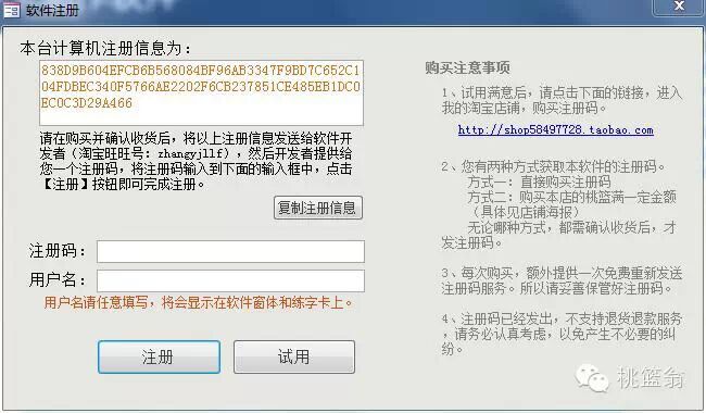 请仔细阅读注册界面右侧的购买注意事项,进行注册。注意注册码是绑定计算机的,换计算机后注册码失效。