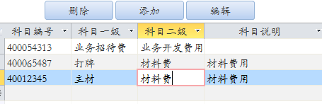 我怎么在用鼠标选择了tu1中的数据,比如最后一条的“材料费”,然后点击 编辑 按钮,在跳转到tu2的界面的,科目编号同tu1中选中那条数据的科目编号一样?