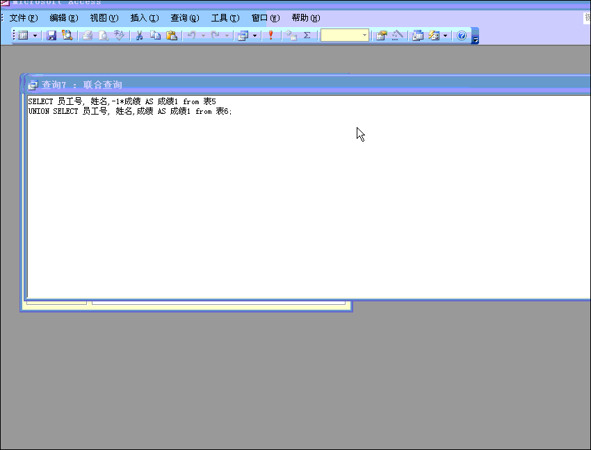 SELECT 表2.员工号, 表2.姓名, 表2.成绩 AS 成绩1, 表1.成绩, nz([表2]![成绩])-nz([表1]![成绩]) AS 表达式1