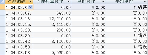 SELECT 表1.产品编码, 表1.入库数量合计, 表1.单价合计, IIf((NZ([单价合计])=0 Or NZ([入库数量合计])=0),0,NZ([单价合计])/NZ([入库数量合计])) AS 平均单价