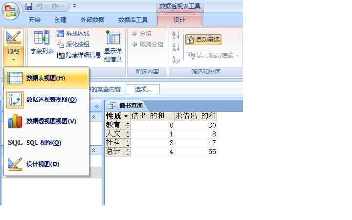 打开数据库,按图所示,可选择数据表视图、透视表视图等等。注意要点:1.两者表的关联属性;2.借出已归还的书当“未借出计”,如果要统计同一本书重复借出次数,可参照查询中的表达式你自己设置。希望能帮到你。