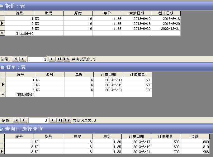 比如以下记录,从2013-6-10起的订单价格为1.36