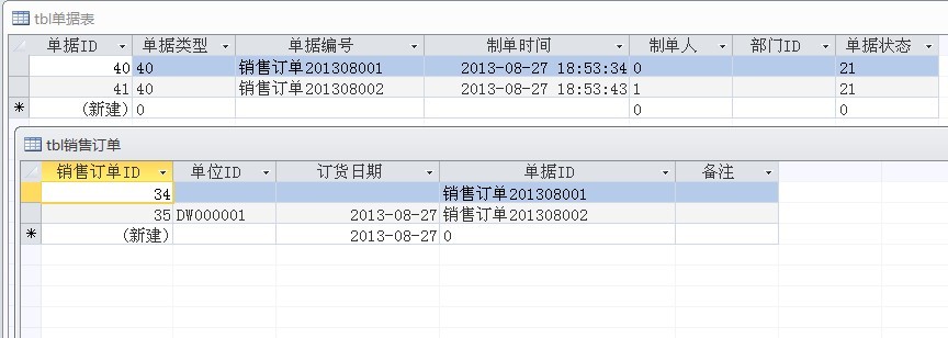 运用了煮江品茶前辈的"数据审核权限示例"做了一张销售订单的窗体,新增数据后,表有数据,查询无法显示,销售订单表的单据ID不知为何又显示了单据编码???