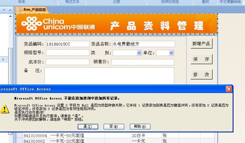 货品编码是主键,为什么老是提示这个呢,如果我把所有内容都填写完成就没有这个提示了