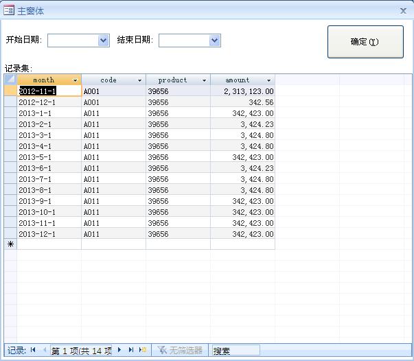 使用方法:请自行更改开始或结束日期,更新后子窗体会自动根据条件搜索相关记录,并且开始或结束日期会自行根据您的修改向后或向前展开六个月日期范围值。
