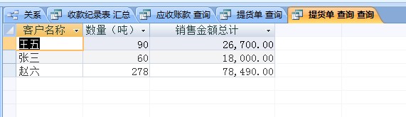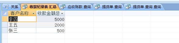 2.应该选择“提货记录查询”所有记录和“收款记录查询”中链接字段相等的那些记录,当然这样会不见了“李四”,但却是合理的,因为李四没有提货何来收款。