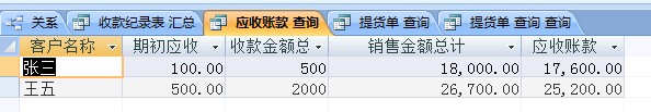 创建查询,应收=销售金额合计-收款记录金额总计,得到以下结构