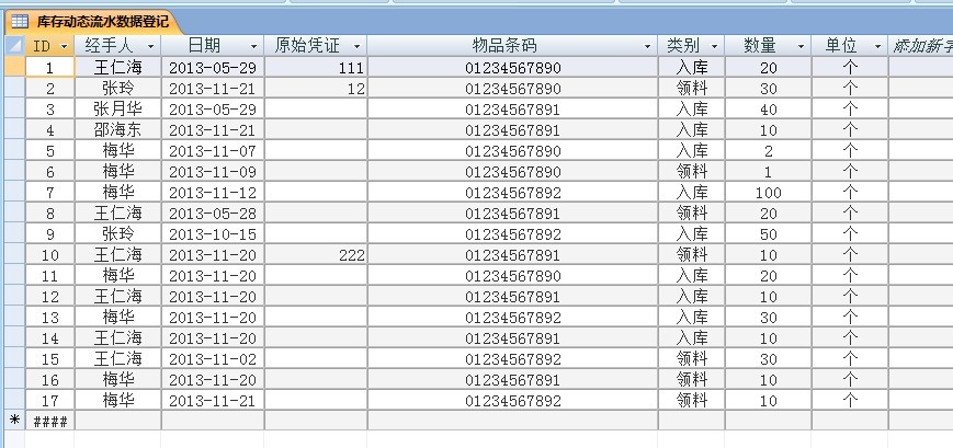 上面这个表一,能否自动 生成一个库存表(查询) 如图二所示: