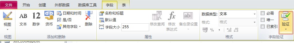 2、在表中设置有效性规则2010方式,在表状态中点到你要设置规则的字段: