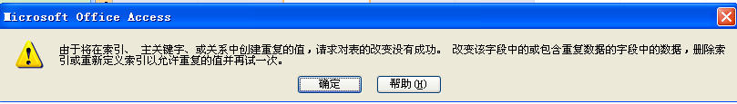 你试试向表中导入数据,粘贴后,再点下一条记录,当订单号重复时,会弹出如下对话框:符合条件则不会弹出。
