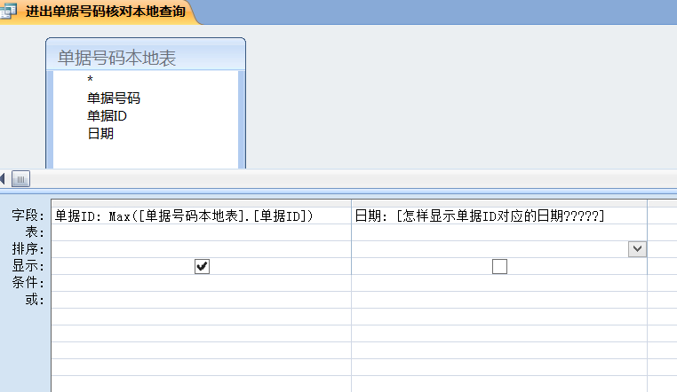 SELECT Max(a.单据ID) AS 单据ID, (select b.日期 from 表1 as b where b.单据ID=a.单据ID) AS 日期 FROM 表1 AS a;