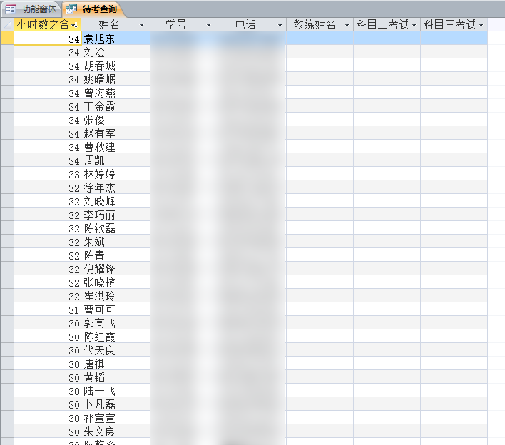 如图查询出满足考试条件的学员后,如何在“教练姓名”“科目二考试时间“”科目三考试时间“里填写相应的信息?