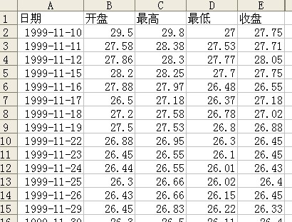 单个表的内容为上市公司历史每日的数据   ,包含,日期 开盘价 收盘价 最高 最低……