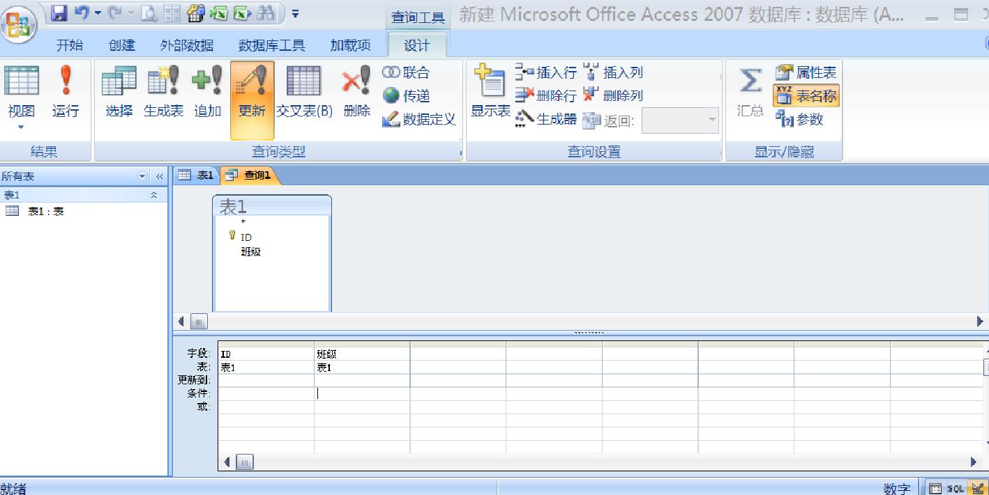 如何将表中“班级”字段中的数字(比如:1”更新为“一班”,“2”更新为“二班”,“3”更新为“一年级”,“4”更新为“二年级”,“5”更新为“三年级一次性通过更新查询设计视图进行更新?