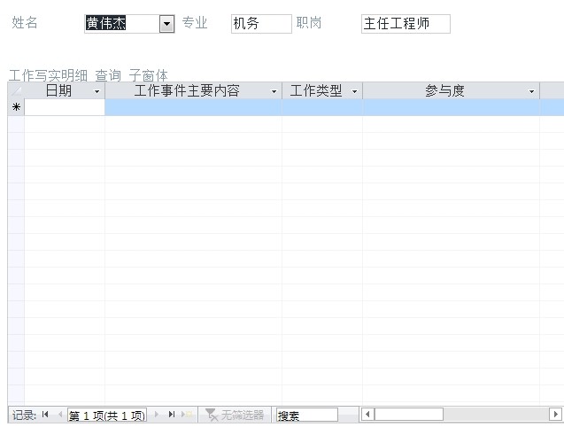 各位老师:我有一张表,和一个窗体,用于记录每个人的写实情况,在抬头的地方,我想通过列表框选择人名,然后人名对应的专业和职岗联动显示出来,请问这个怎么设计?
