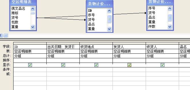 这三个数据是根据 唯一标示 货号串联一起的, 从属关系都是, 空运明细优先。