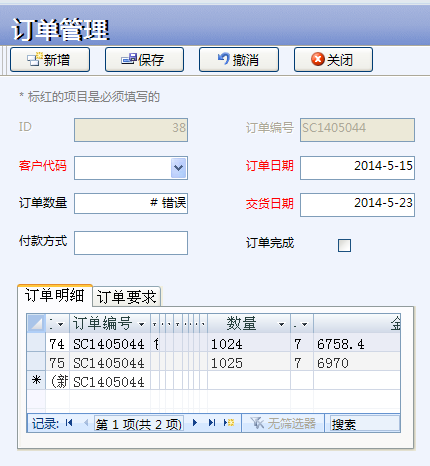 或窗体内和控件标签为:“订单编号”相关联的主控件的名称是否是订单编号