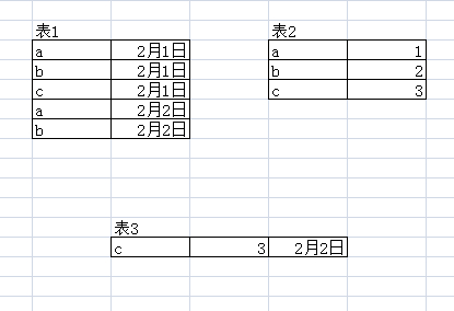 如何用查询从表1和表2得出表3的结果(在ACCESS里非SQL server),就是查询表2在表1某一天没有记录的结果