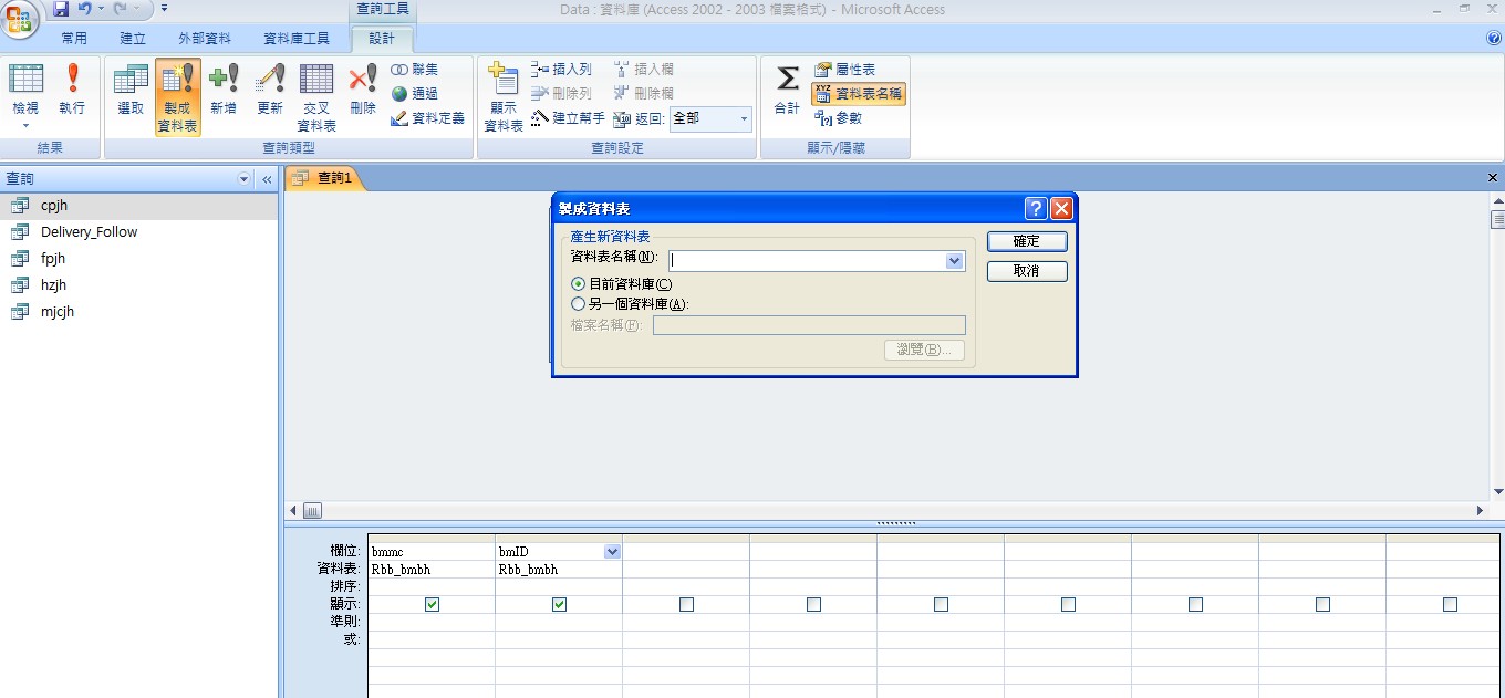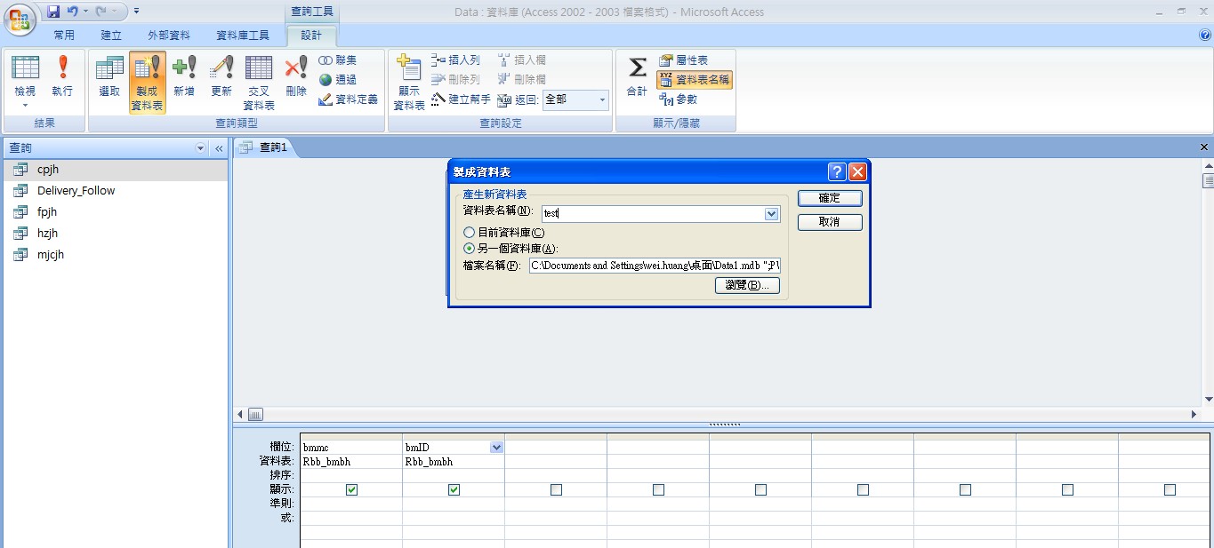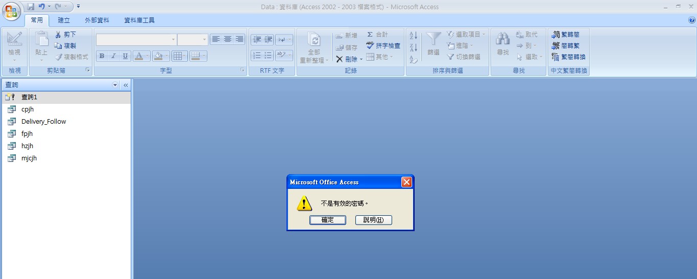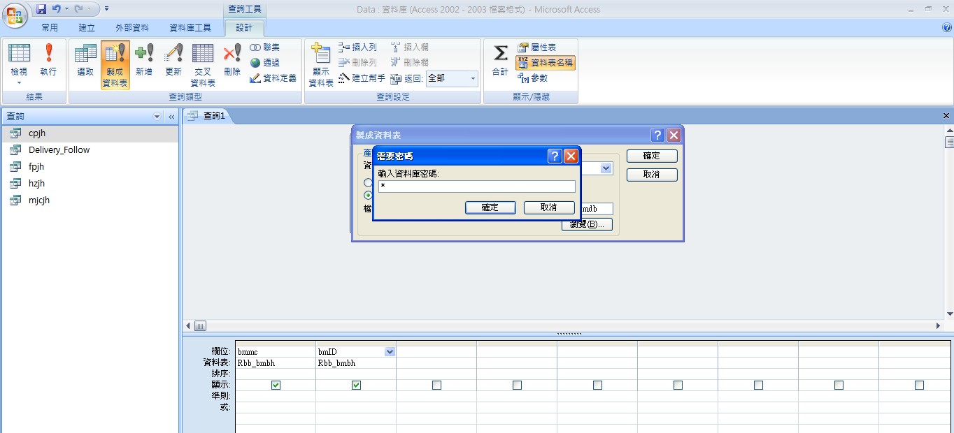 access生成表查詢寫入有密碼的數據庫提示密碼錯誤