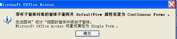[5分]如果窗体包含子窗体,默认视图不能改为连续窗体