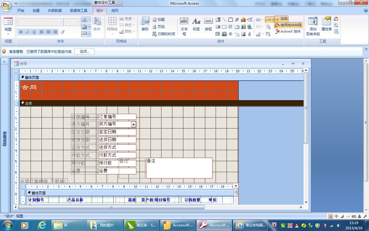 在设计视图中,选中某个字段后,点击:菜单---排列---堆积,这个字段控件就可以随意移动了