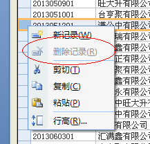 对其中的记录右击出现菜单,第二项删除记录有时是灰色的不能用