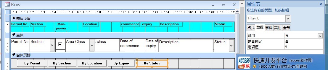 上面图片中下面“By Permit ,By Section ,By Location , By Expiry ,By Status"点击后分别能对窗体中的相应项进行排序,现在要增加一个按钮;