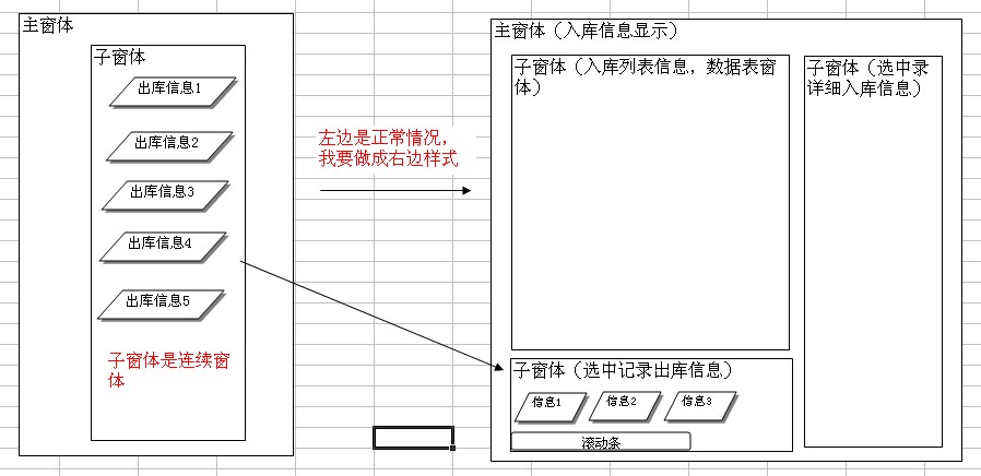 子窗体(出库信息)实际上还是动态的行改列。我猜你是为了美观,不用垂直滚动条。所以想把此窗体的显示方式改为:行为“出库量”,列为“出库日期”?