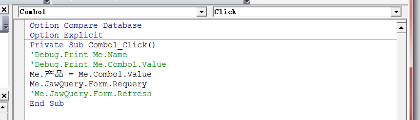 承蒙各位指导,本人有所进步,顺便再问一个问题。 就是子窗体为什么不能及时反应跟着窗体的字段变化?我更换了combo1的很多事件都不行,requery和refresh都不行。