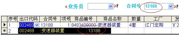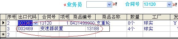 可是再选完其它合同号后,子窗体中的“出口代码”组合框中的数据还是没刷新。所以只好关闭后再选其它合同号,如下图
