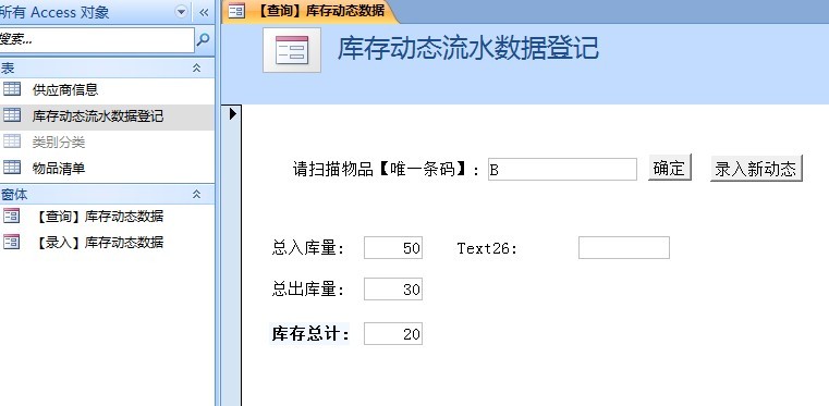 想在Text26中显示 物品清单表中 当指定条码时 某一字段的值