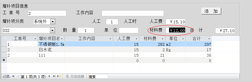 ??? 增补合计=增补材料费+增补人工费