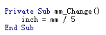 新建一命令按钮,在按钮事件中的单击中 输入inch=mm/5