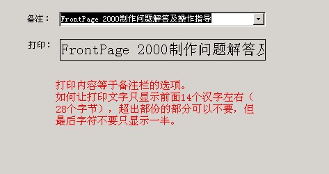打印栏显示为“FrontPage 2000制作问题解答”就可以了,最后的‘及’不要只出现一半