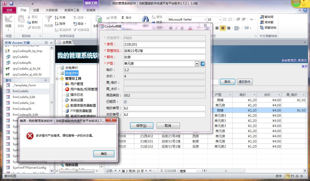 本人在快速平台生成的窗体frmCodefw_Edit中用组合框自动填充方式新增或修改数据,但保存时弹出“多步操作产生错误”的提示,如下图