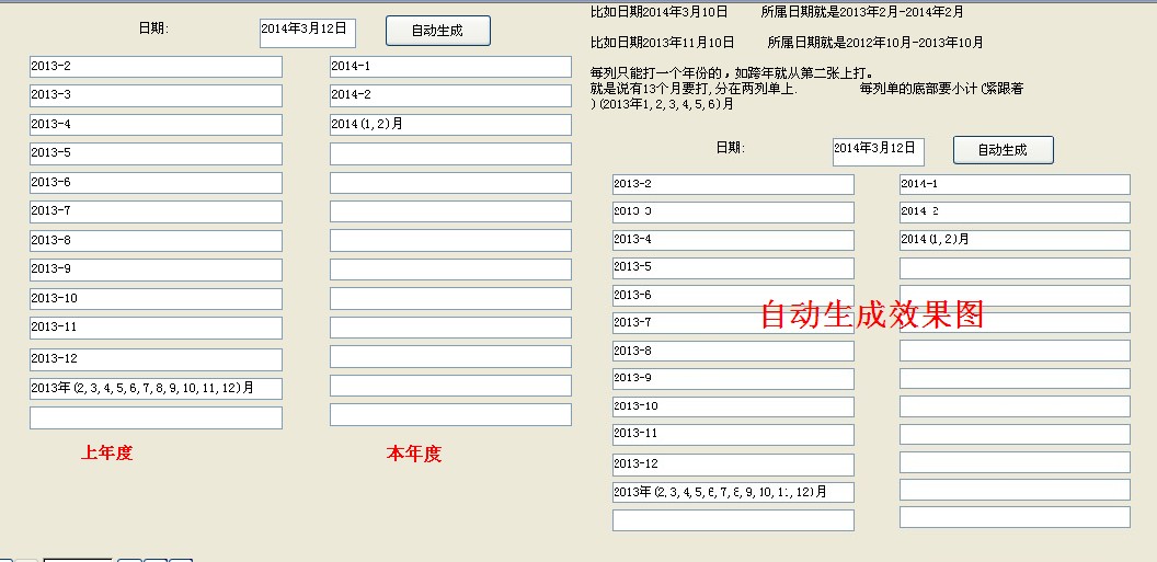 然后月份+1,判断年份是否变化,如果没变化,那么文本框名+1,如果变化则写入年份,然后文本款名从B1开始写入此年月。