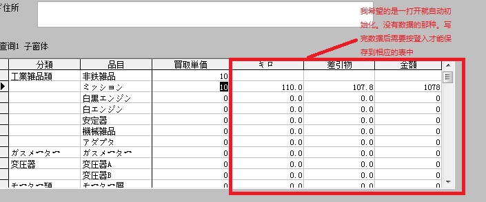 我想要画面中后3样打开就是初始化。然后输入数据,需要按登入才能保存到相应的表中。请老师指点一下点击下载此附件