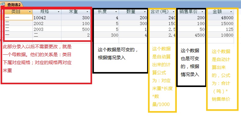Me.米重 = DLookup("[米重]", "查询表2", "[类目] = '" & Me.类目 & "' and [规格] = '" & Me.规格 & "'")