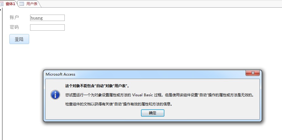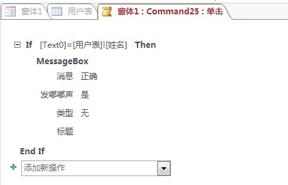 事件生成器,语法规则。   我想着直接 Text0输入值 (登陆页面的账户text栏)等于用户表的姓名值,就弹出窗口。