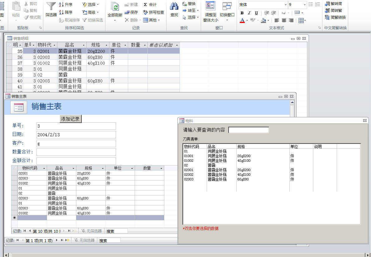 双击物料代码,能输入到销售明细表,不能按销售单号输入到销售明细子窗体点击下载此附件