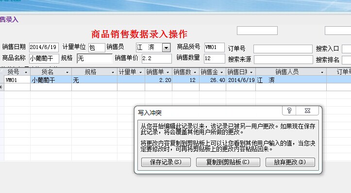 平台开发--做了个销售录入  写入冲突求解决